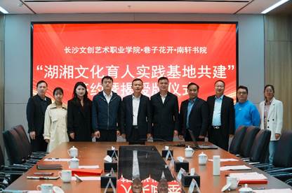 2025年10月20日,“湖湘文化育人实践基地共建”签约暨揭牌仪式在长沙文创艺术职业学院举行。该基地由学校、地方政府、企业与文化社团四方共同建设,标志着“校、地、企、社”协同育人机制正式建立,为湖湘文化的传承与创新人才培养搭建了新平台。